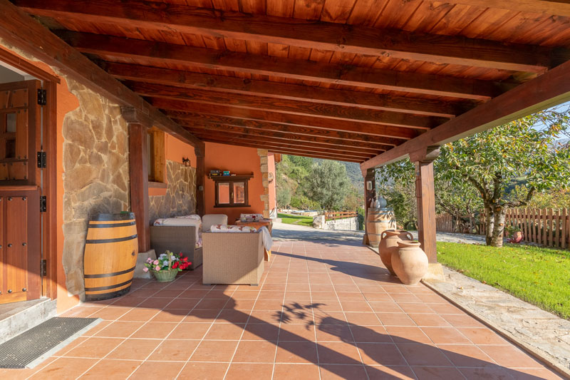 Gedeelde ruimte: tuin met verschillende zitjes, 3 eettafels, overdekt terras, overdekte BBQ plaats, zwembad(je), speelveld met trampoline en lounge-hoek en parkeerplaatsen op eigen terrein.